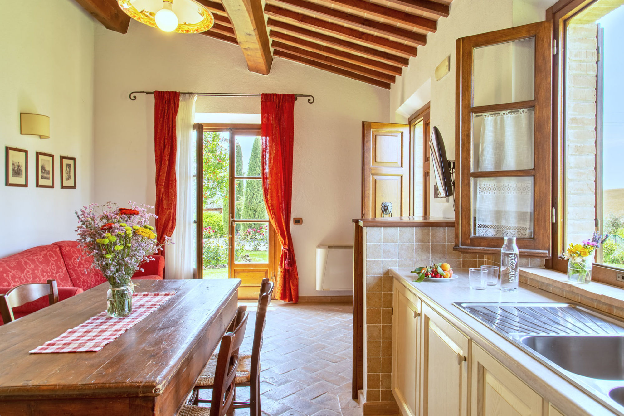 L’agriturismo La Bruciata ha quattro appartamenti accoglienti, molto spaziosi e confortevoli, arredati con mobili antichi tipicamente in stile toscano, con travi e mattoni a vista, pavimenti in cotto, balconi in travertino per non alterare il sapore del passato, ma offrendovi allo stesso tempo tutti i comfort di oggi: aria condizionata, docce idromassaggio con sauna, tv satellitare, caminetti rustici e una bellissima piscina con vista sulla valle.